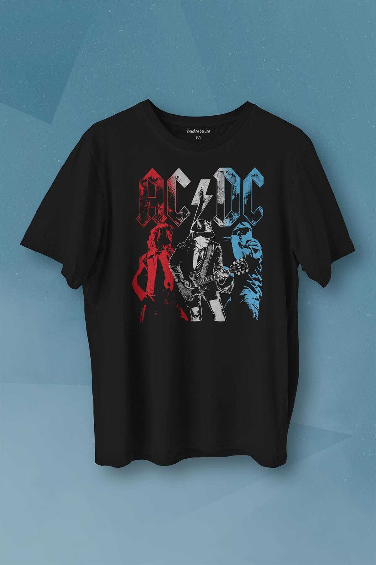 Ac Dc Kırmızı Bordo Gri Mavi Angus ve Malcolm Young Rock'n Roll Baskılı Tişört Unisex T-shirt