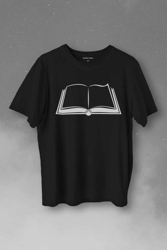 Açık Kitap Sayfası Edebiyat Roman Şiir Şair Adam Baskılı Tişört Unisex T-Shirt