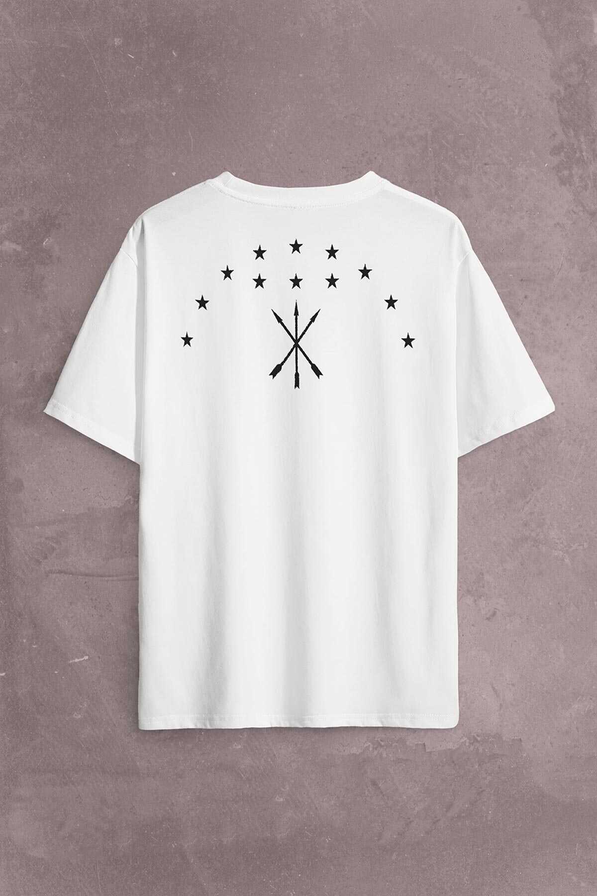 Adige Çerkes Bayrağı Adygea Circassian Flag Sırt Ön Baskılı Oversize Tişört Unisex T-Shirt