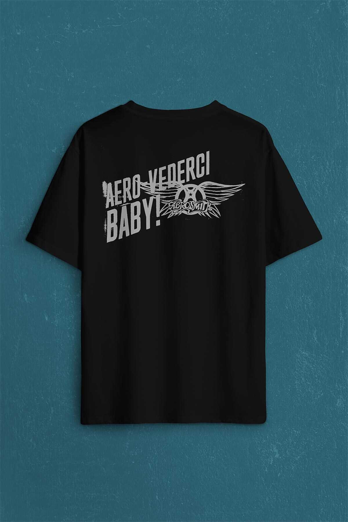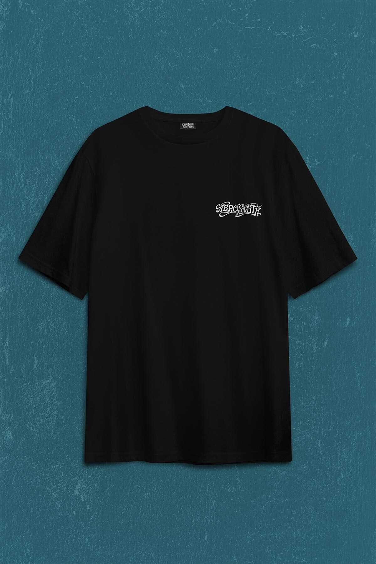 Aerosmith Steven Tyler Black On Black Wings Sırt Ön Baskılı Oversize Tişört Unisex T-Shirt