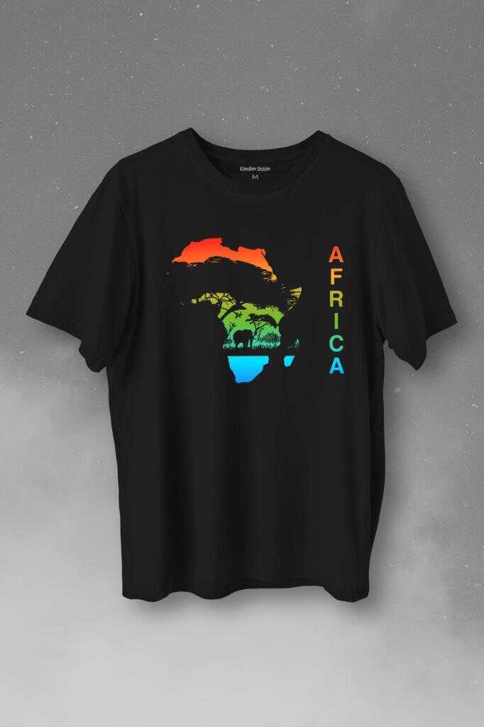 Africa Afrika Kıtası Gökkuşağı Renkleri Baskılı Tişört Unisex T-Shirt