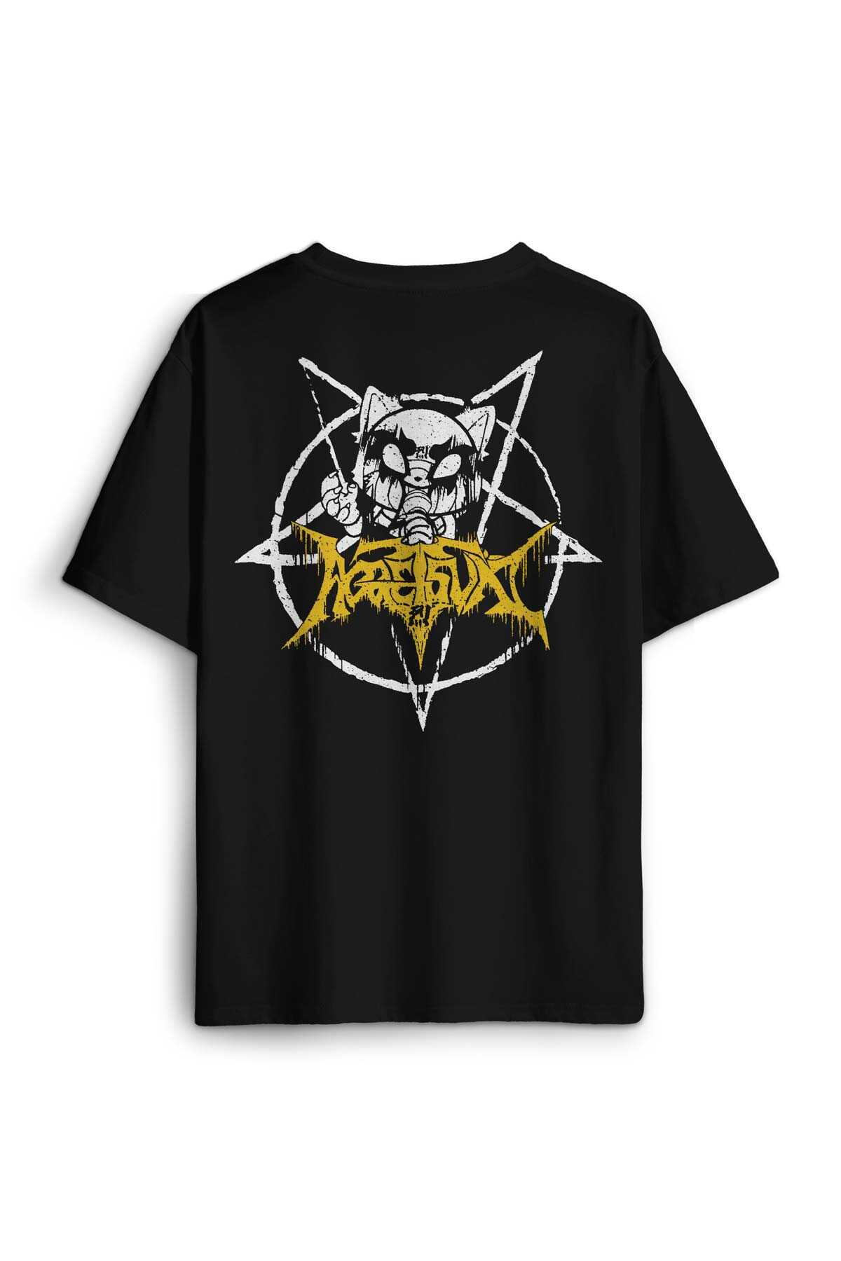 - Aggretsuko Agresif Retsuko Gotik Japon Anime Manga Metal Gothic Baskılı Oversize T-shirt Siyah Tişört - OVR12S-4302