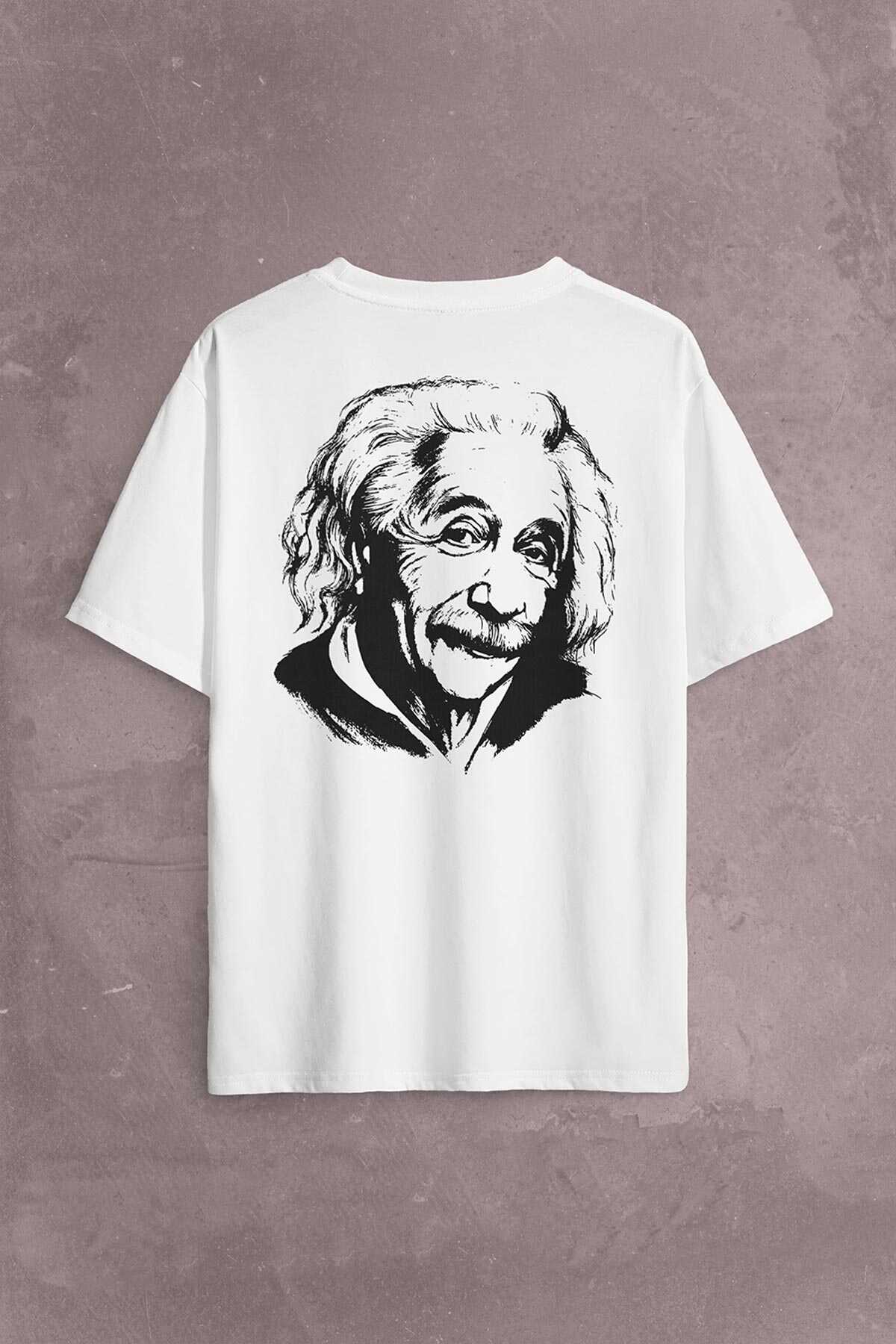 Albert Einstein İzafiyet Görelilik Teorisi E=mc2 Fizik Sırt Ön Baskılı Oversize Tişört Unisex T-Shirt