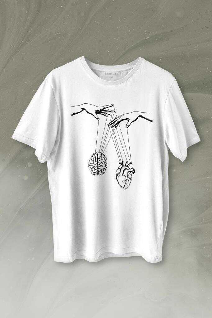 Asılan Kalp Ve Beyin Aşk Akıl Mantık Minimal Baskılı Tişört Unisex T-shirt
