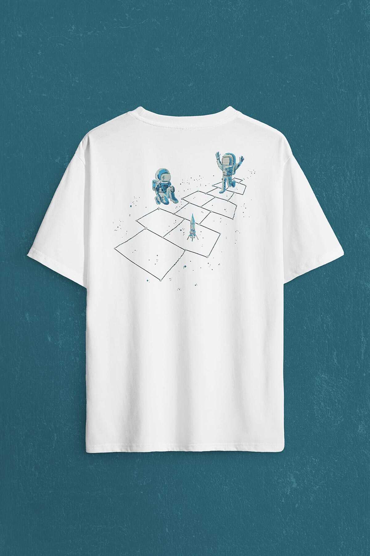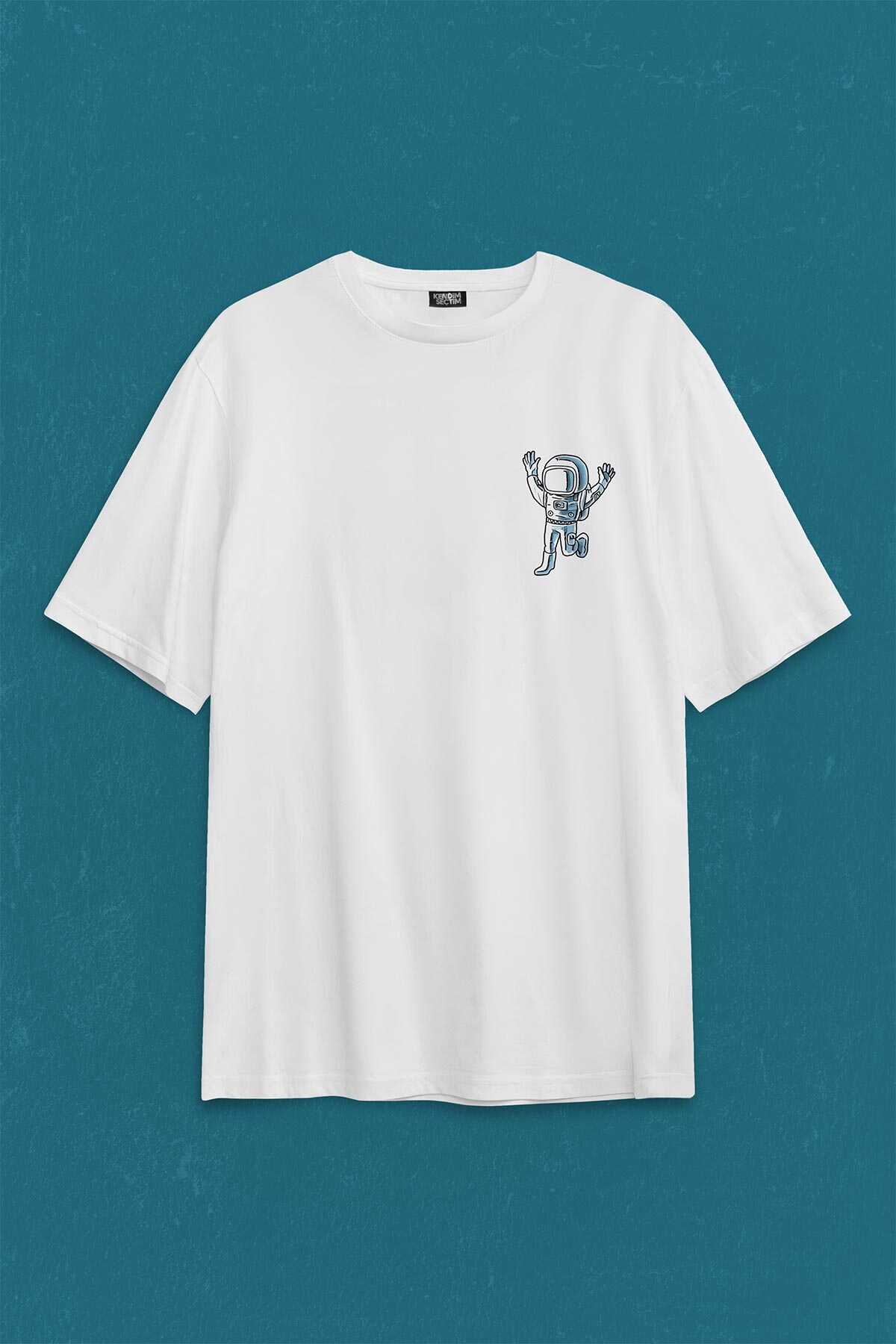 Astronot Dans Uzay Cosmos Space Galaksi Gezegen Sırt Ön Baskılı Oversize Tişört Unisex T-Shirt