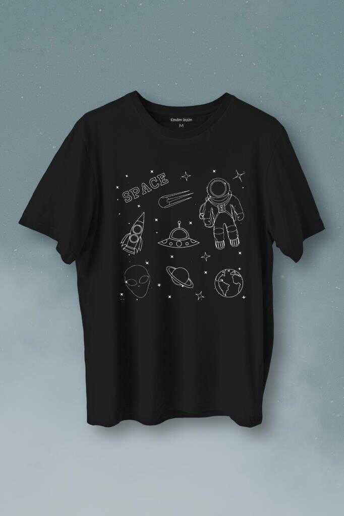 Astronot Uzay Mekiği Space Cosmos Baskılı Tişört Unisex T-Shirt