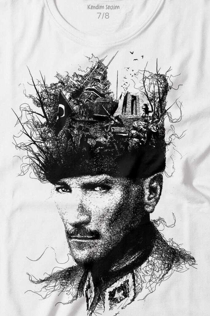 Atatürk Çanakkale Silüet Tipografi Mustafa Kemal Cumhuriyet Baskılı Tişört Çocuk T-shirt