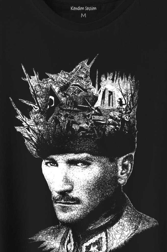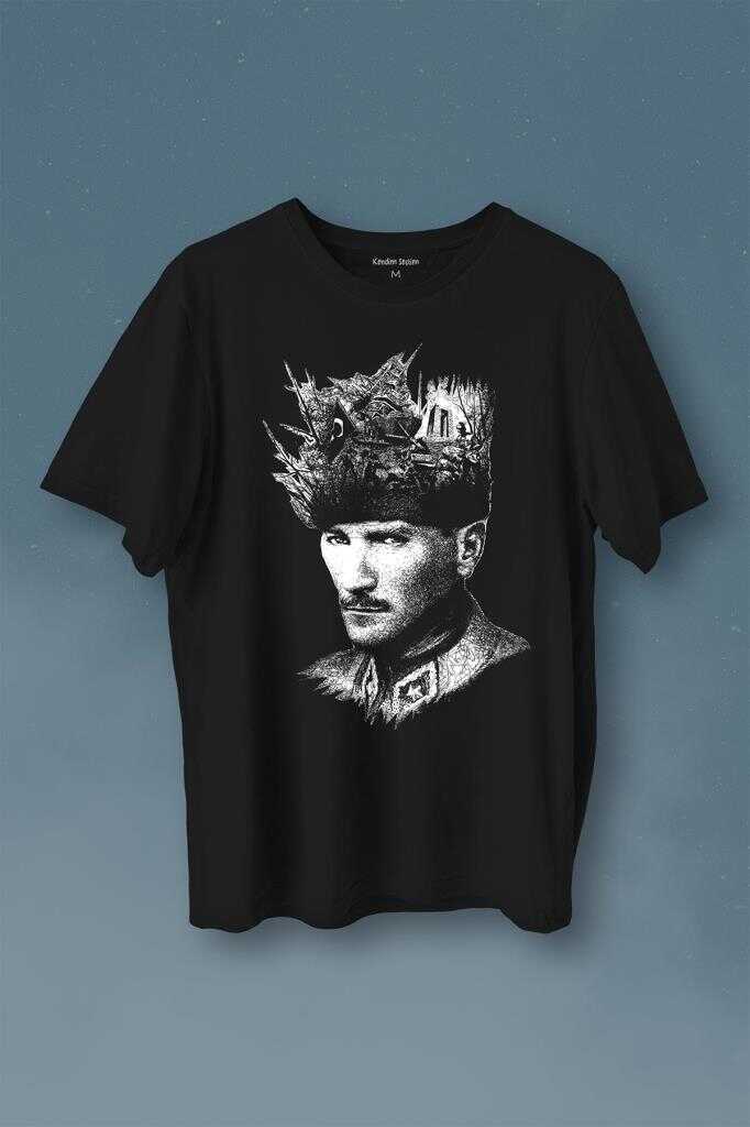 Atatürk Çanakkale Silüet Tipografi Mustafa Kemal Cumhuriyet Baskılı Tişört Unisex T-Shirt