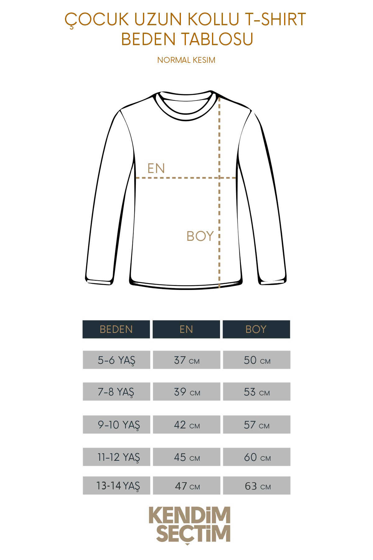 Çocuk beden ölçülerimiz unisex ve normal kesimdir