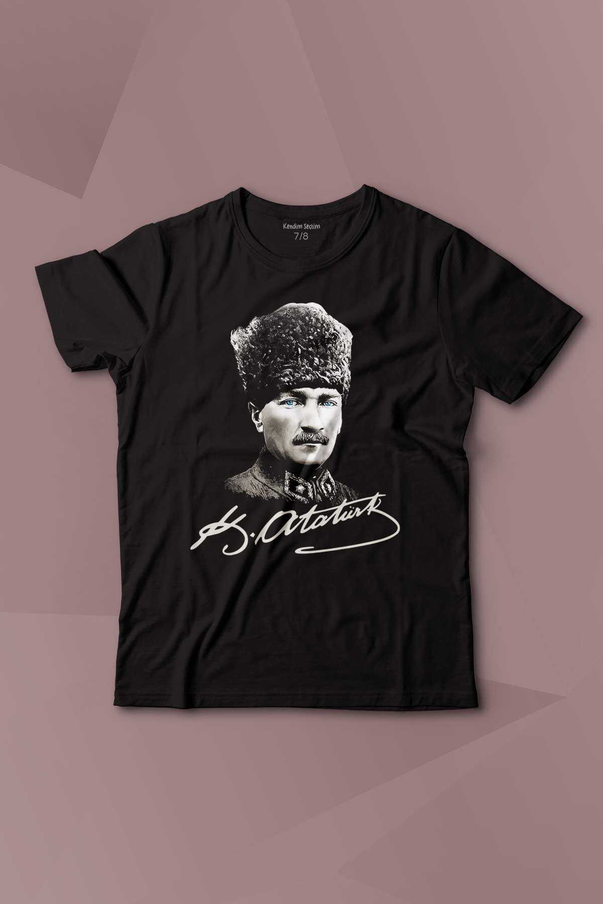 - Atatürk Gazi Mustafa Kemal Kalpaklı Baskılı Çocuk Tişört Kısa Kollu