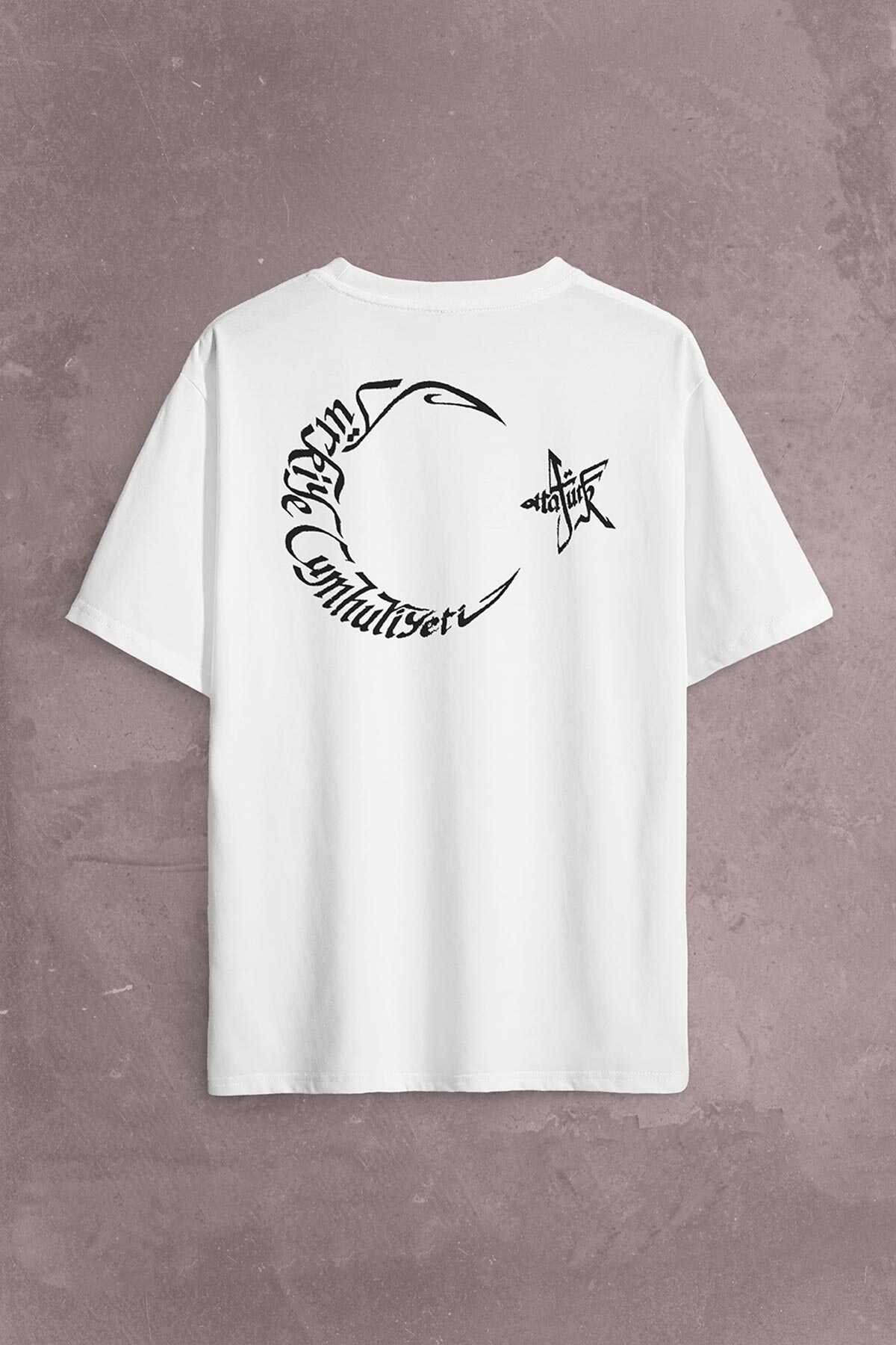 Atatürk Tc Türk Bayrağı Osmanlica Arapça Sırt Ön Baskılı Oversize Tişört Unisex T-Shirt