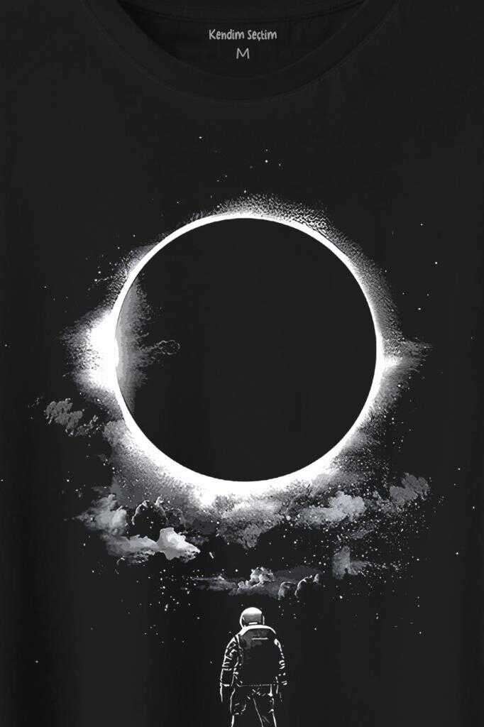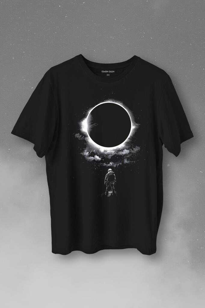 Ay Üzerinde Kara Delik Dünyaya Abkan Astronot Cosmos Baskılı Tişört Unisex T-Shirt