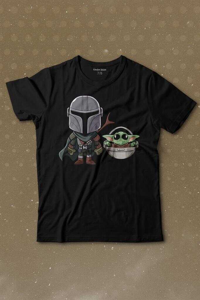 Baby Yoda Mando Figür The Mandalorian Bebek Yoda Star Wars Baskılı Tişört Çocuk T-shirt