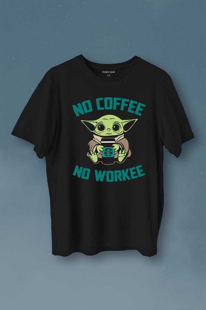 Baby No Coffee No Workee Star Kahve Baskılı Tişört Unisex T-Shirt