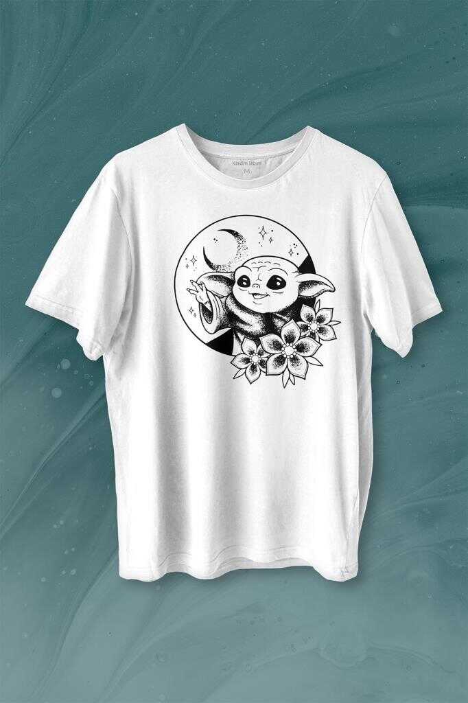 Baby Yoda Star Wars Mandalorian Ay Hilal Silüeti Baskılı Tişört Unisex T-shirt