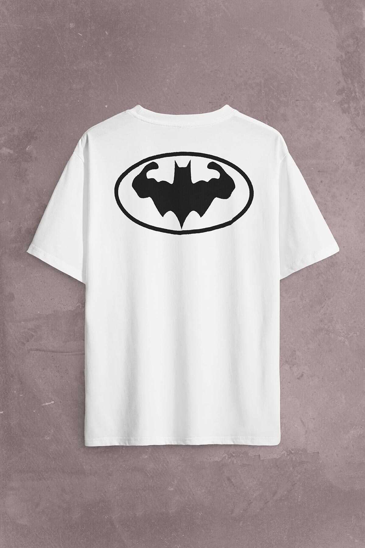 Batman Logo Gym Fitness Bodybuilding Sırt Ön Baskılı Oversize Tişört Unisex T-Shirt