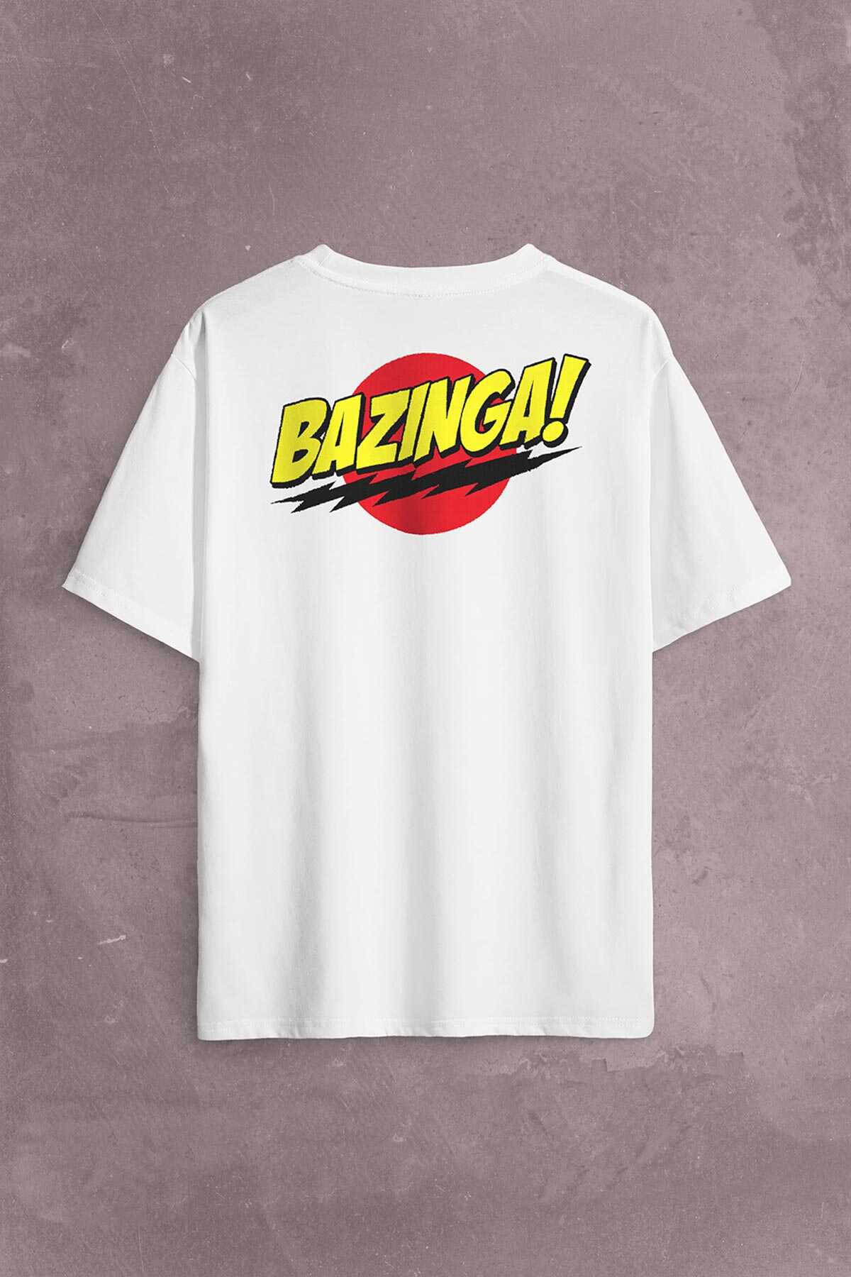 Bazinga Şaka The Big Bang Theory Sheldon Cooper Sırt Ön Baskılı Oversize Tişört Unisex T-Shirt