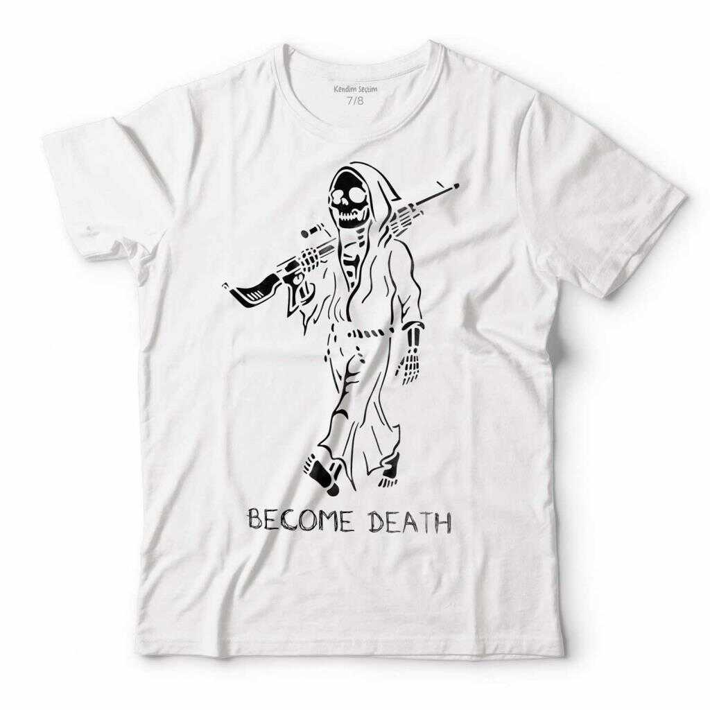 BECOME DEATH SKULL TÜFEK SİLAH KURU KAFA SKELETON ERKEK TİŞÖRT