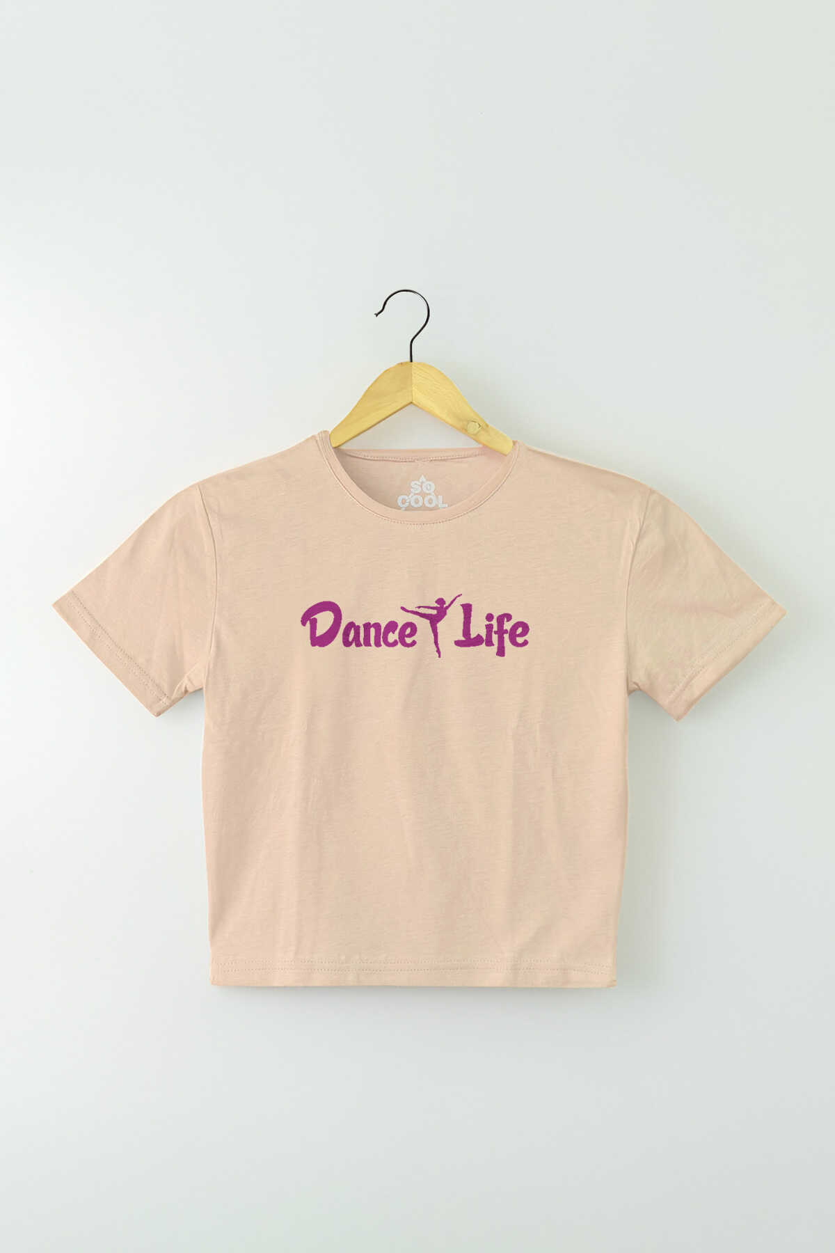 Bej Renk Crop T-shirt Dance Life Dans Hayattır Bale Hip Hop Dancing Baskılı Kadın Tişört Baby Tee