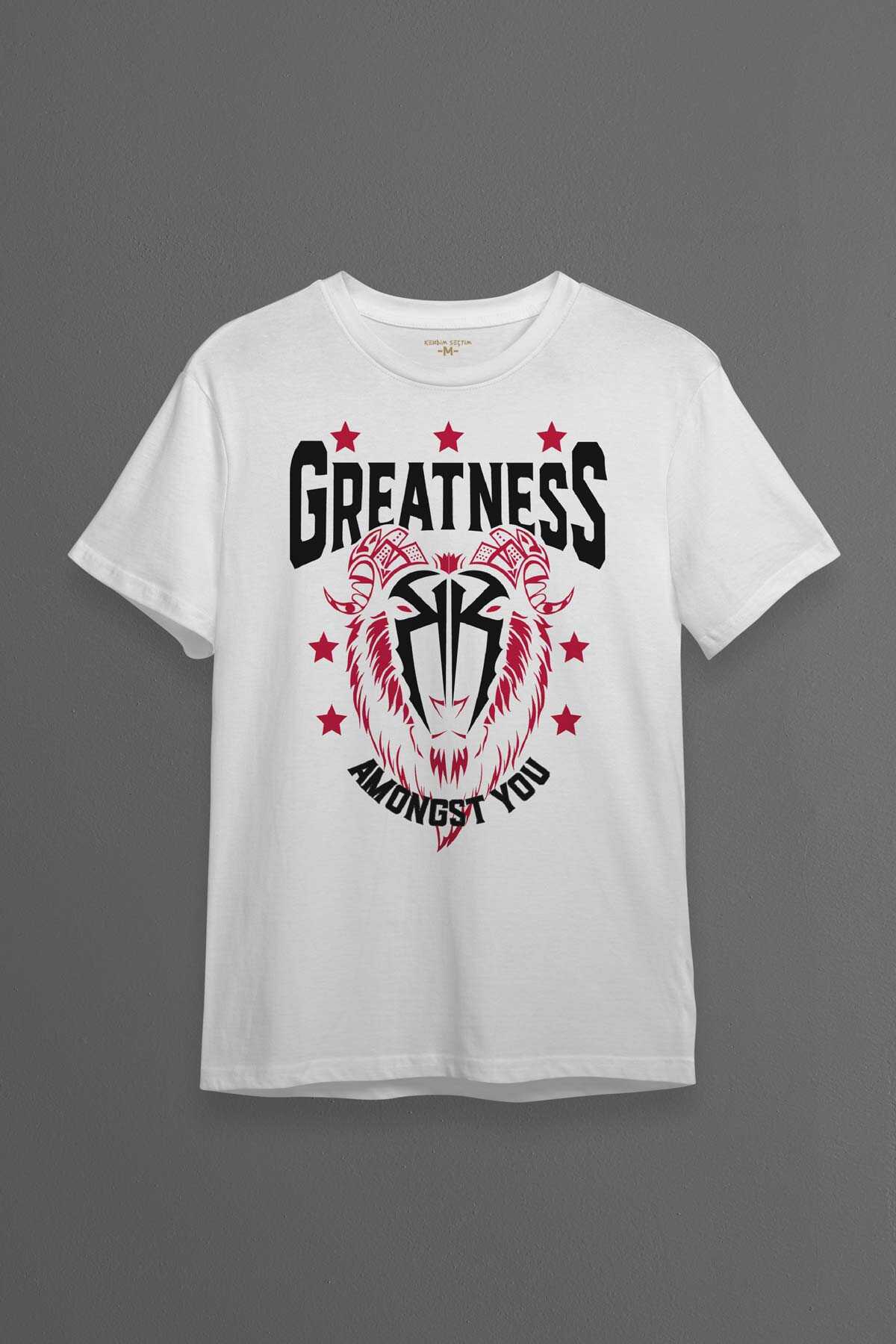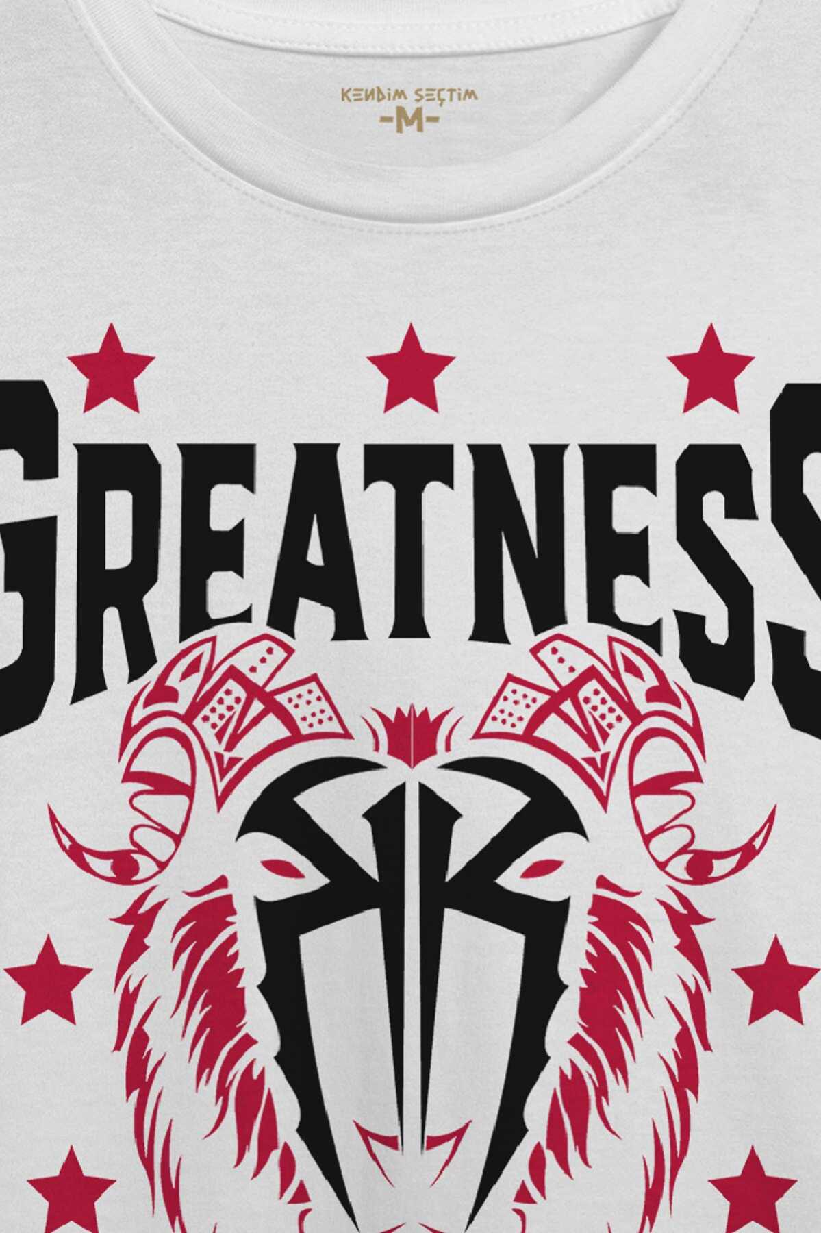 Beyaz Erkek Tişört Greatness Roman Reigns Gym Spor Fitness Baskılı T-shirt