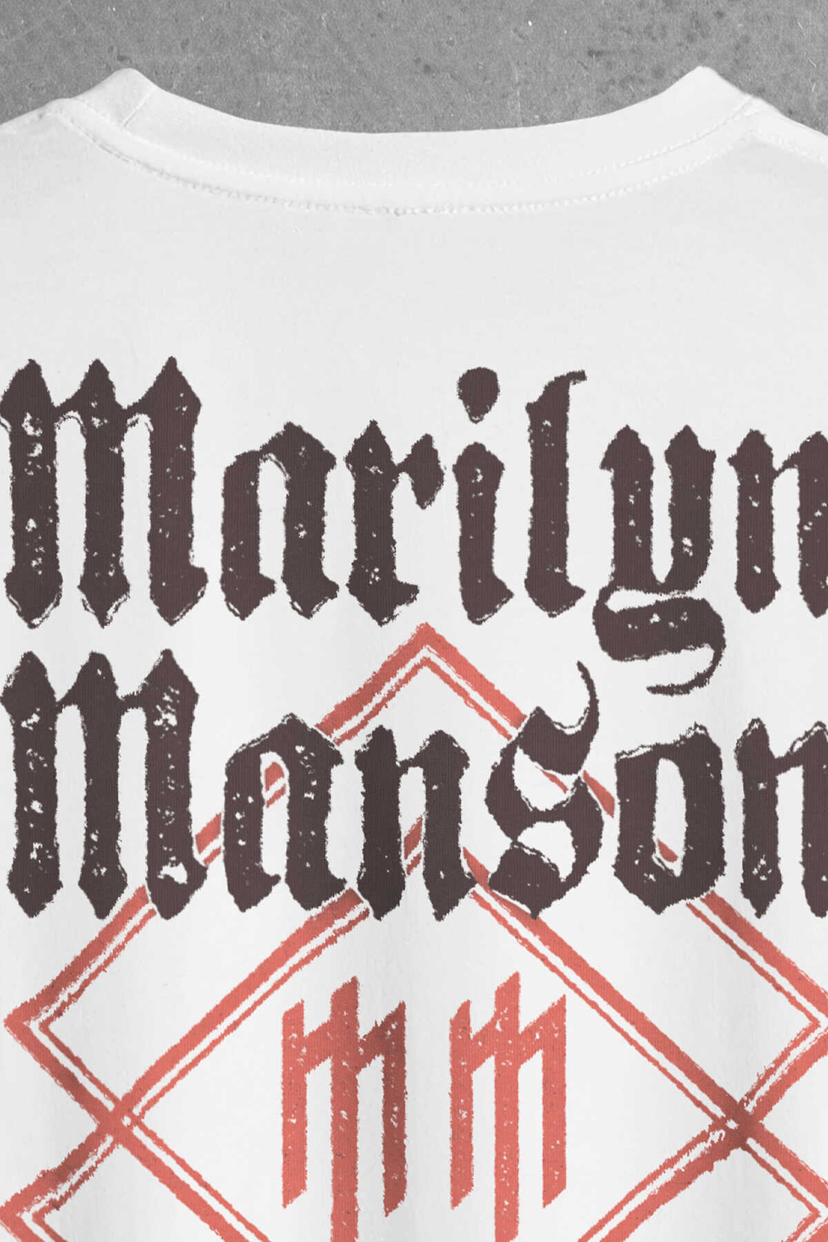 Beyaz Oversize T-shirt Marilyn Manson Logo Rock Metal Müzik Baskılı Tişört