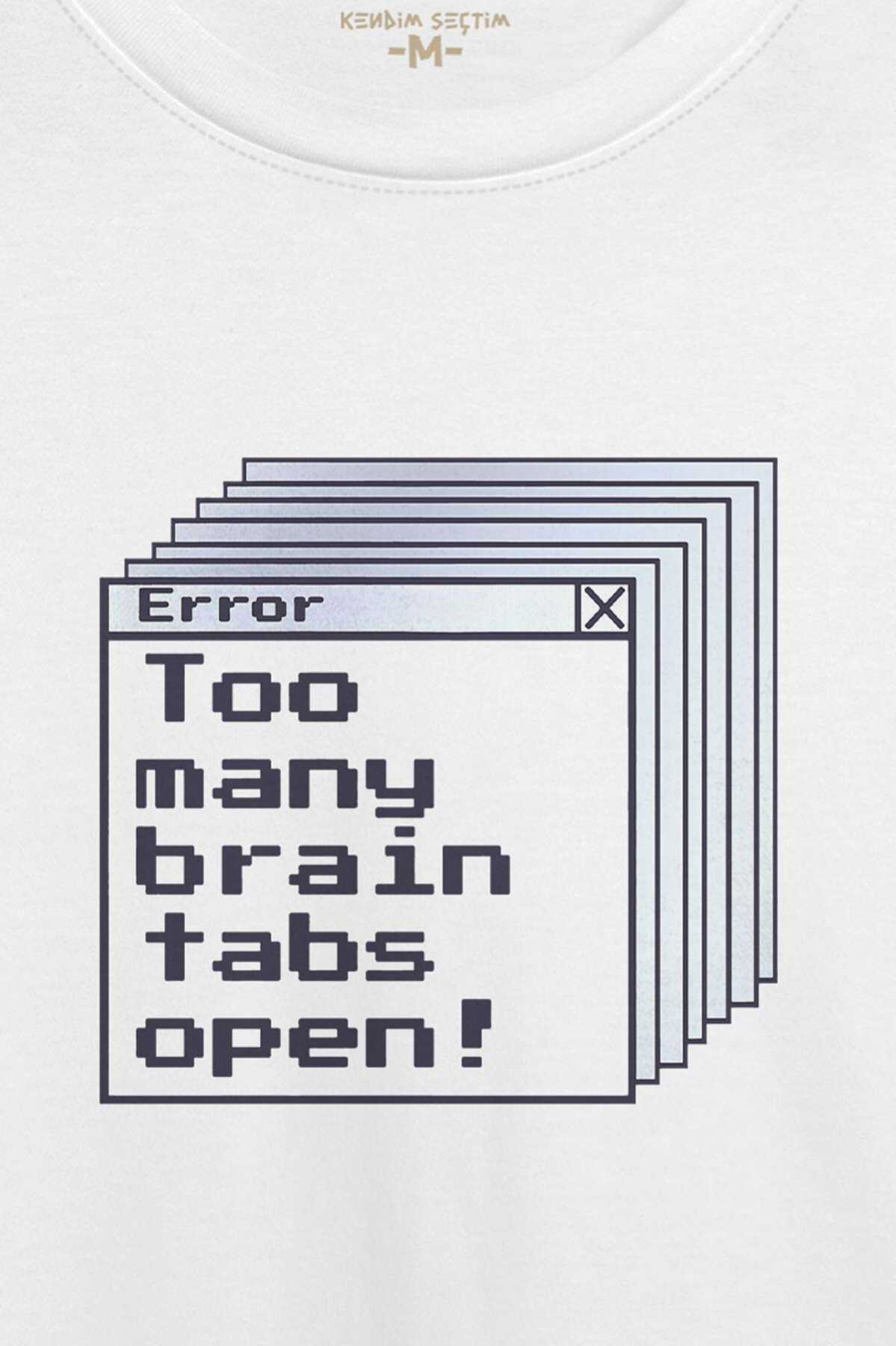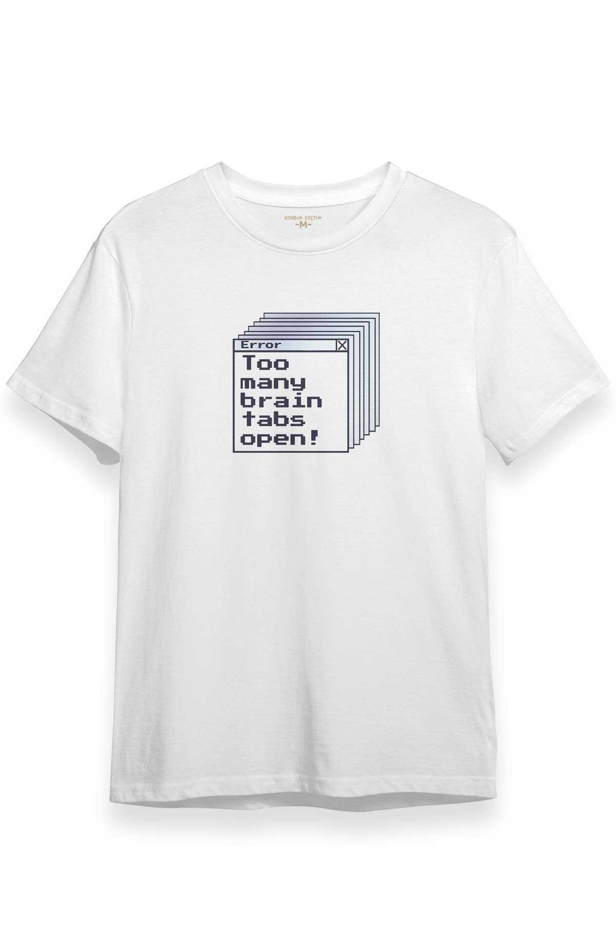 Beyaz T-shirt Too Many Brain Tabs Error Overthink Funny Eğlenceli Baskılı Unisex Tişört