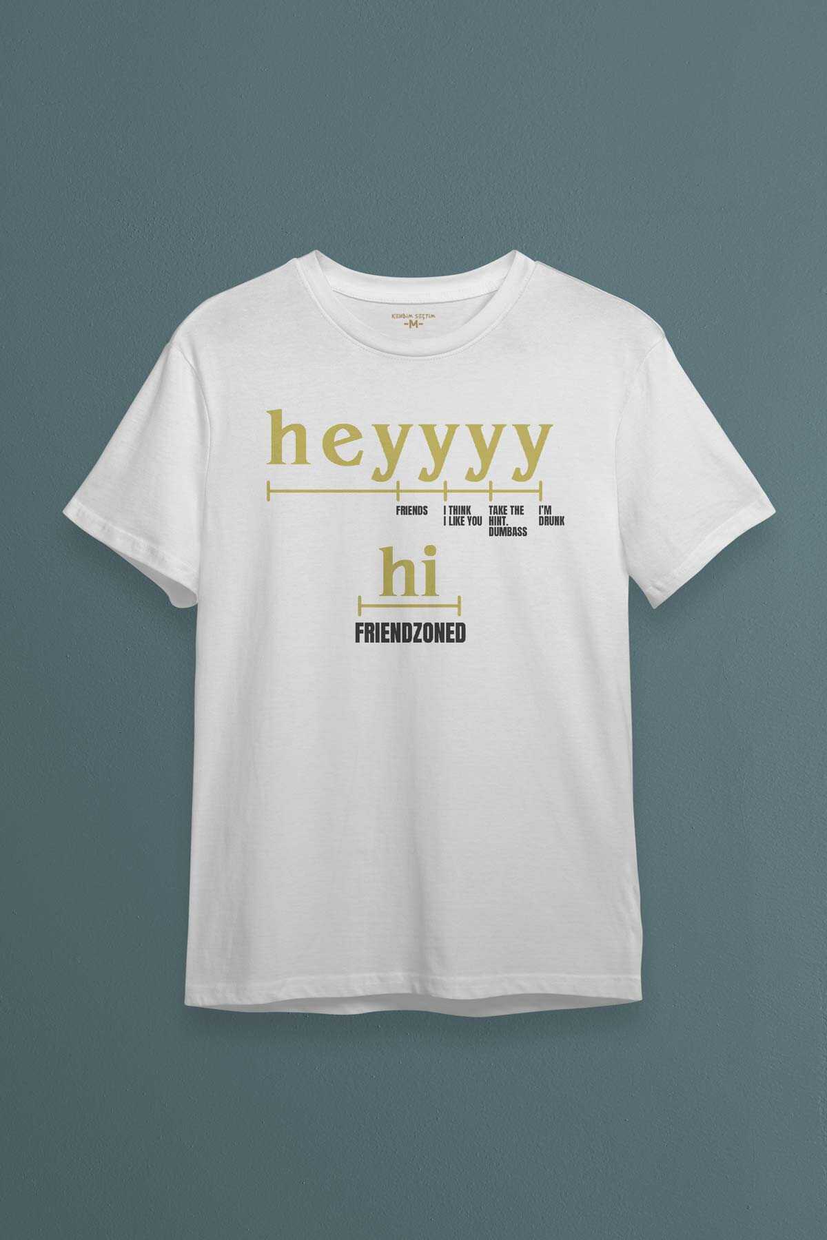 Beyaz Tişört Friendzone Hey Hi Funny Selam Eğlenceli Merhaba Yazı Baskılı Unisex T-shirt