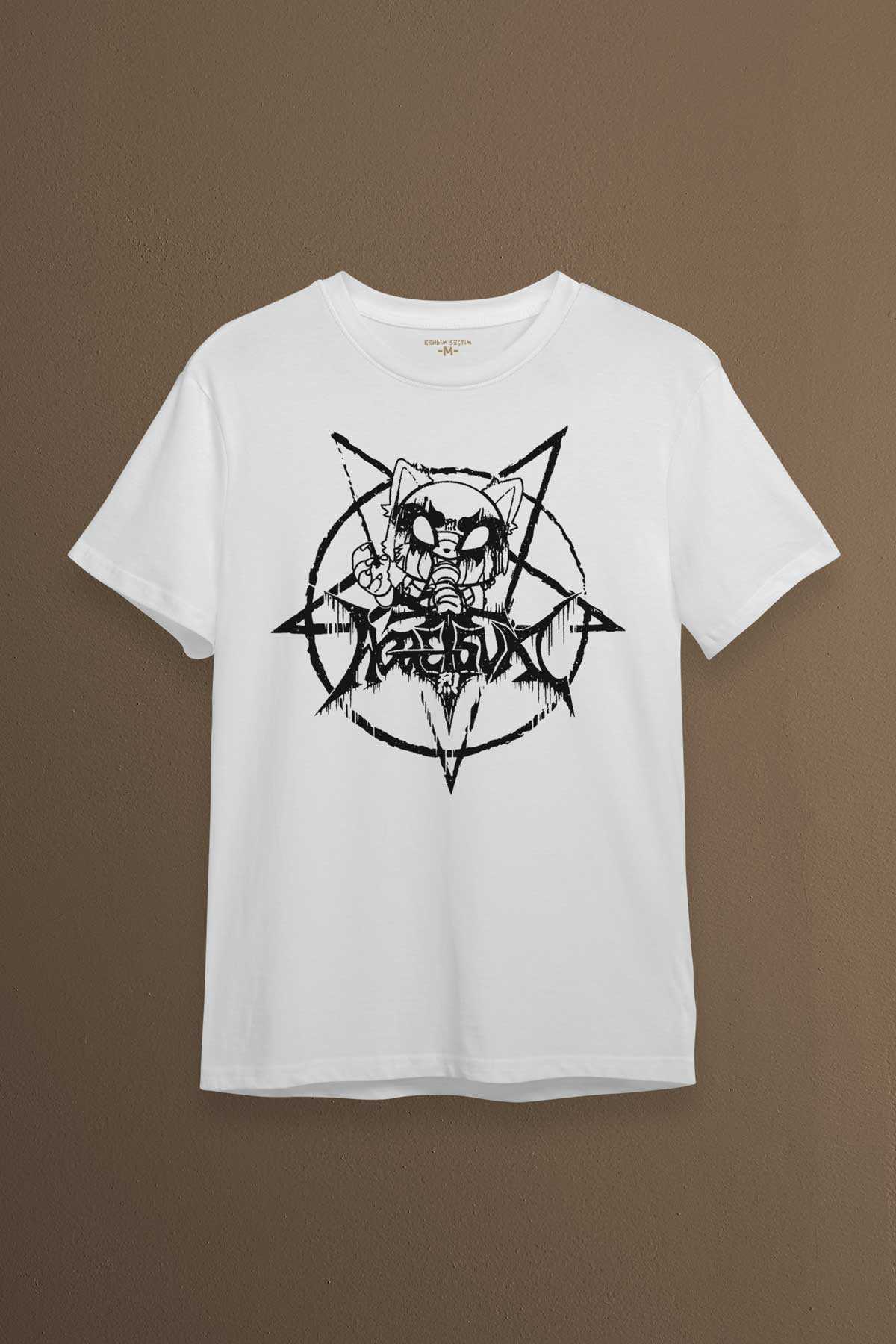 Beyaz Unisex Aggretsuko Agresif Retsuko Gotik Japon Anime Manga Metal Gothic Baskılı T-shirt
