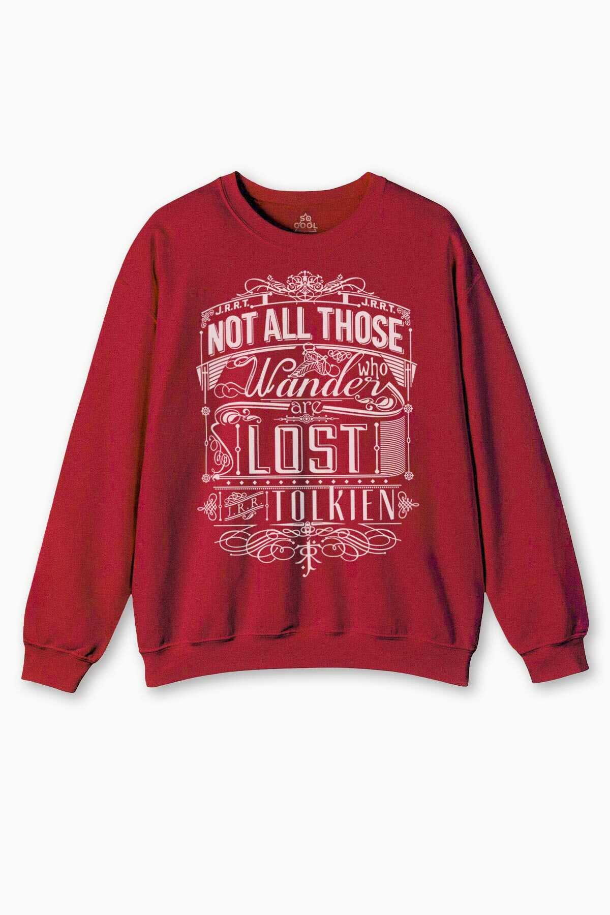 Bisiklet Yaka Sweatshirt Not All Those Who Wander Are Lost Lord Of The Rings Baskılı Unisex Sweat