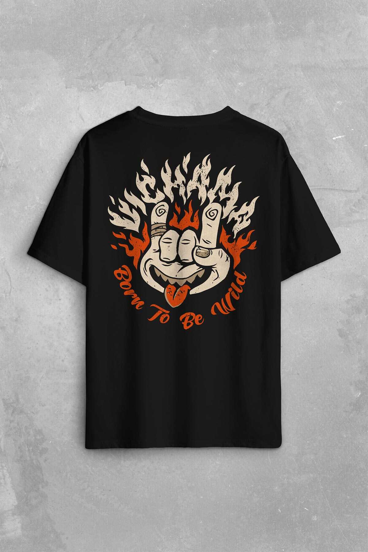 | Born To Be Wild Rock And Roll Music Müzik Sırt Ön Baskılı Oversize Tişört Unisex T-Shirt |