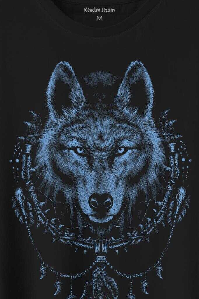 Bozkurt Kurt Kafası Wolf Mavi Baskılı Tişört Unisex T-Shirt