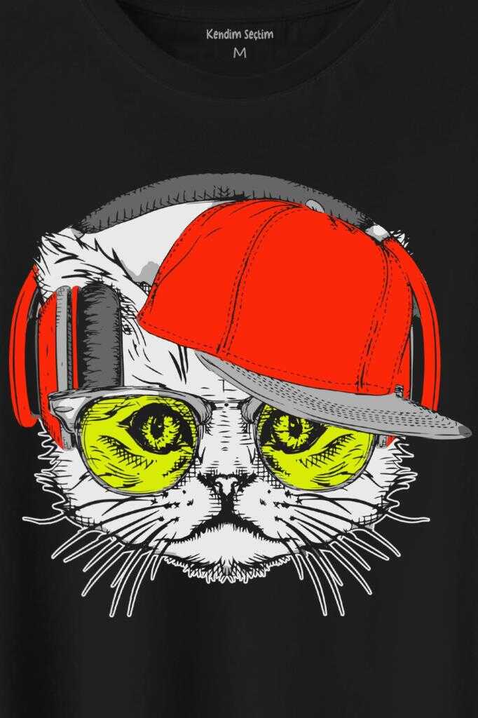 Cat Glasses Gözlüklü Kırmızı Kedi Baskılı Tişört Unisex T-Shirt