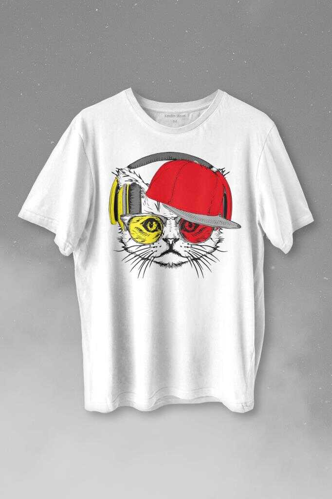 Cat Glasses Gözlüklü Sarı Kırmızı Kedi Baskılı Tişört Unisex T-shirt