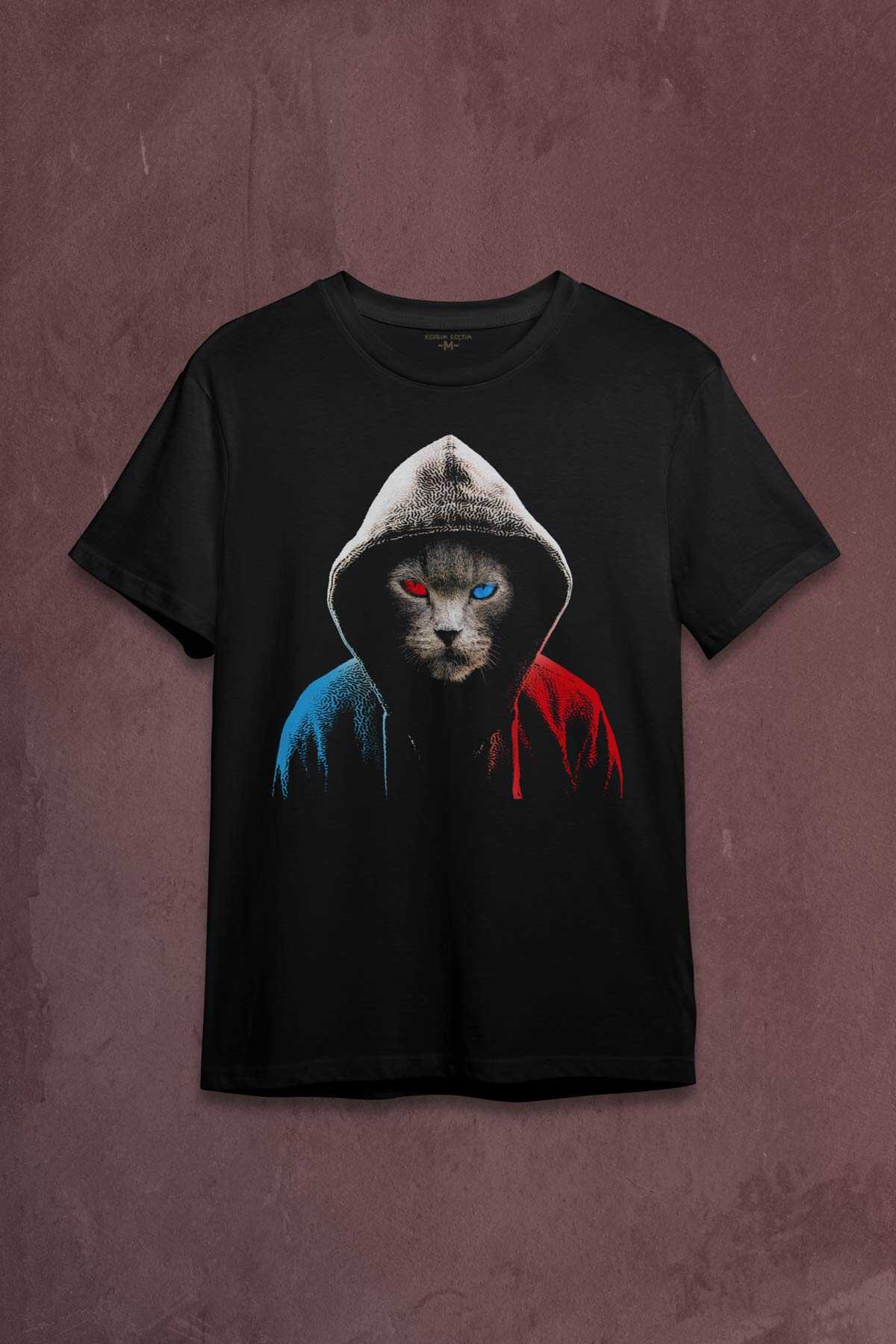 Cat Trabzon Kedisi Bordo Mavi Baskılı Tişört Unisex T-shirt