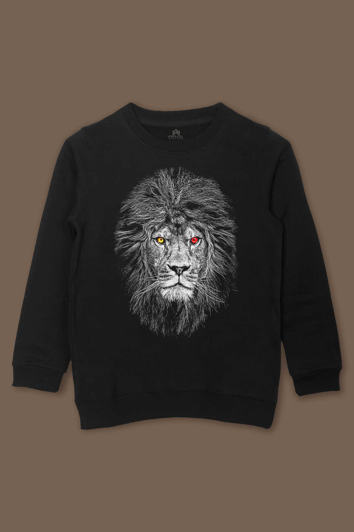 Çocuk Sweatshirt Aslan Kafa Sarı Lion Head Kırmızı Baskılı Sweat