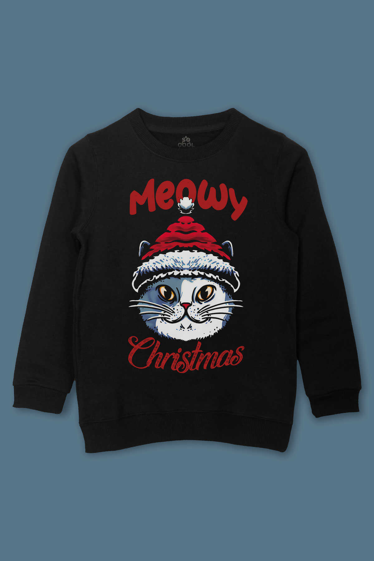 Çocuk Sweatshirt Kedi Cat Meow Christmas 2026 Noel New Year Yılbaşı Baskılı Sweat