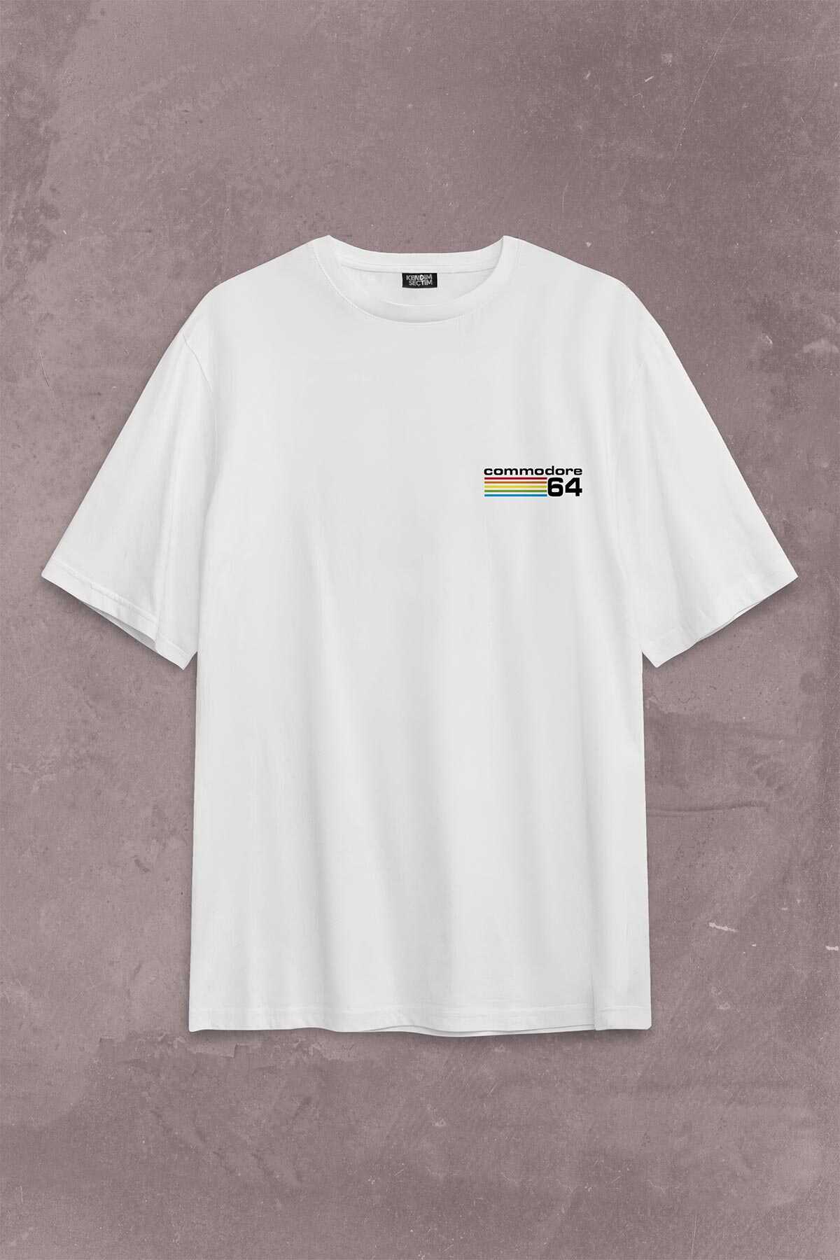 Commodore 61 C64 Logo Antika Bilgisayar Sırt Ön Baskılı Oversize Tişört Unisex T-Shirt OVR12B2056