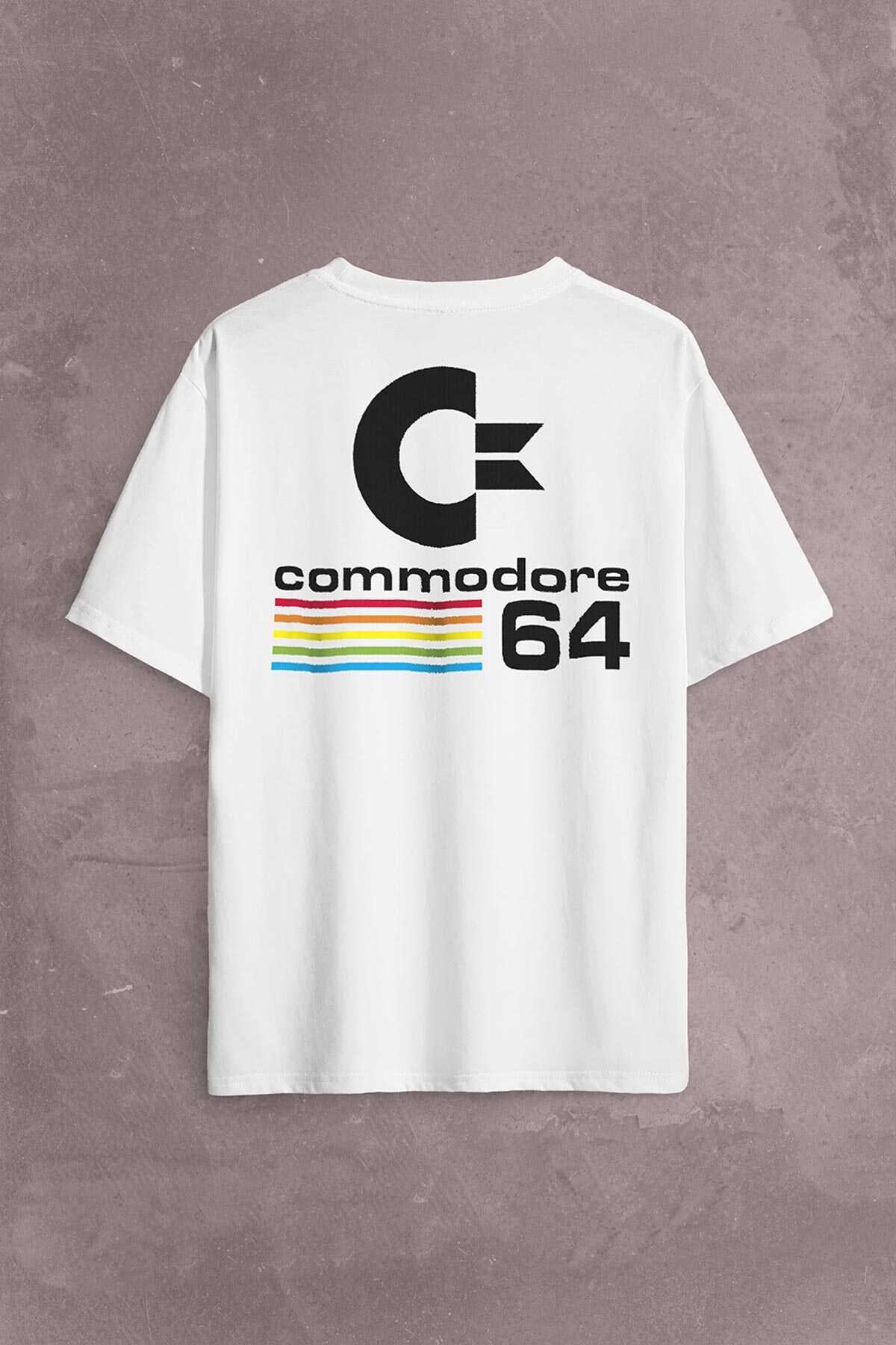 Commodore 61 C64 Logo Antika Bilgisayar Sırt Ön Baskılı Oversize Tişört Unisex T-Shirt OVR12B2057