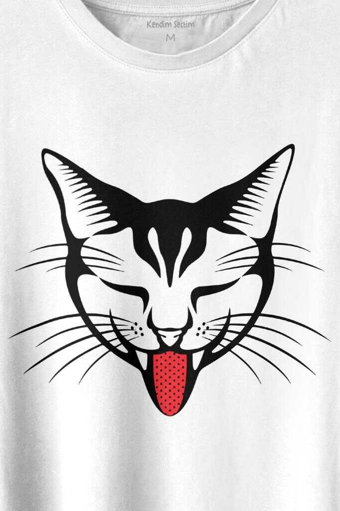 Dilini Çıkaran Sevimli Kedi Cat Music Baskılı Tişört Unisex T-shirt