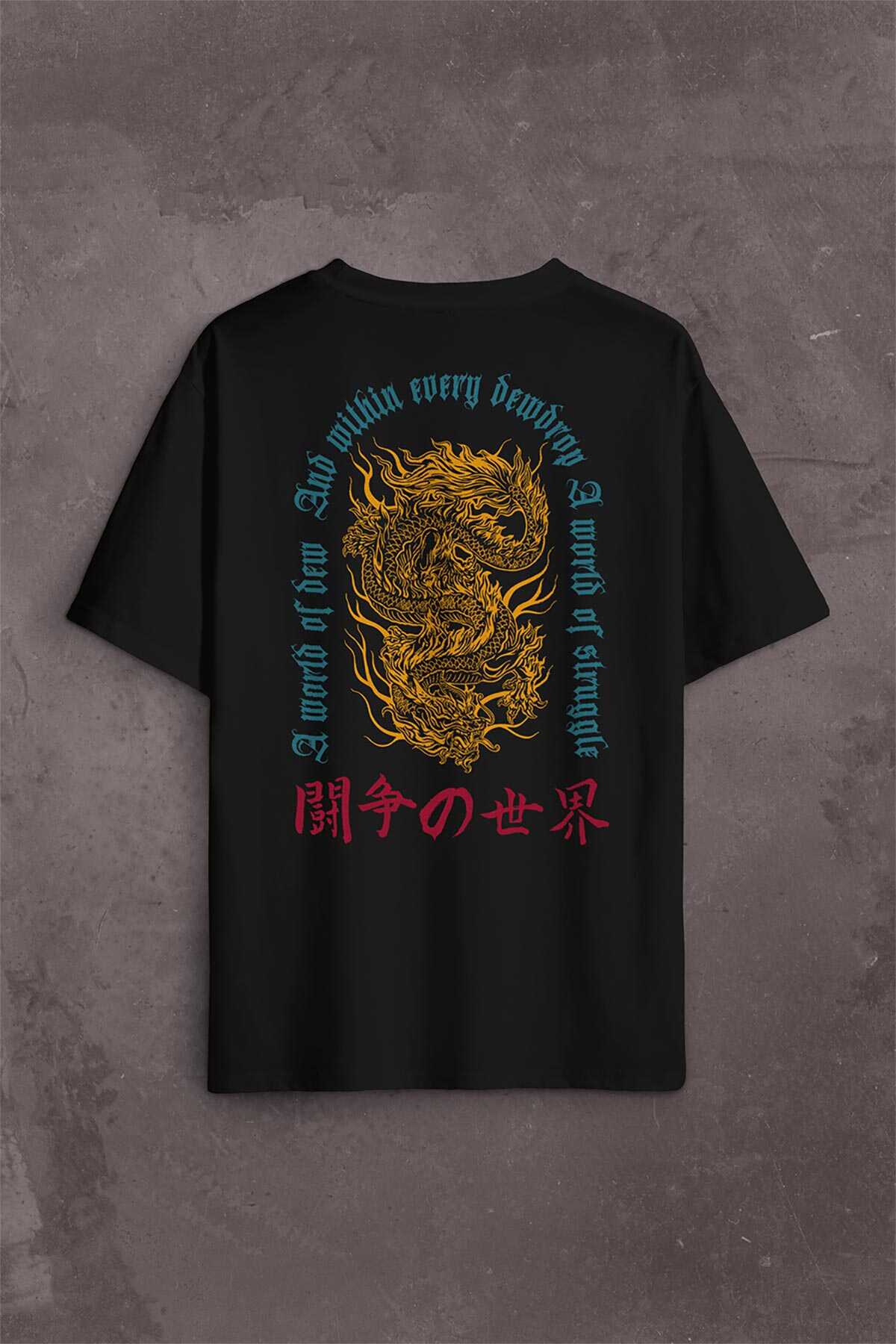 *Dragon Japanese Urban Drake Ejder Japonca Uzak Doğu Sırt Ön Baskılı Oversize Tişört Unisex T-Shirt