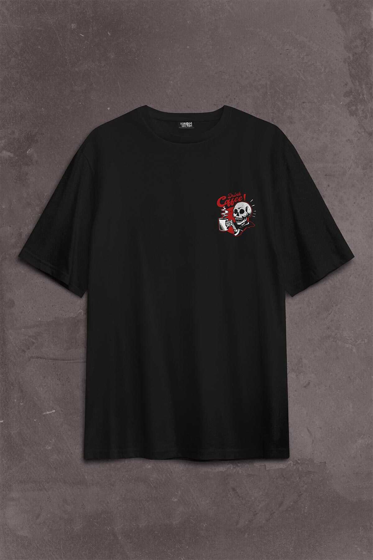 Drink Coffee Skull Kahve Funny Eğlence Sırt Ön Baskılı Oversize Tişört Unisex T-Shirt