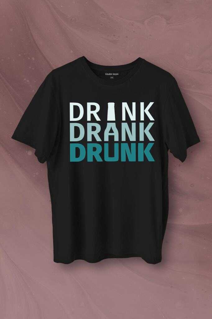 Drink Drank Drunk Tipografi Baskılı Tişört Unisex T-Shirt