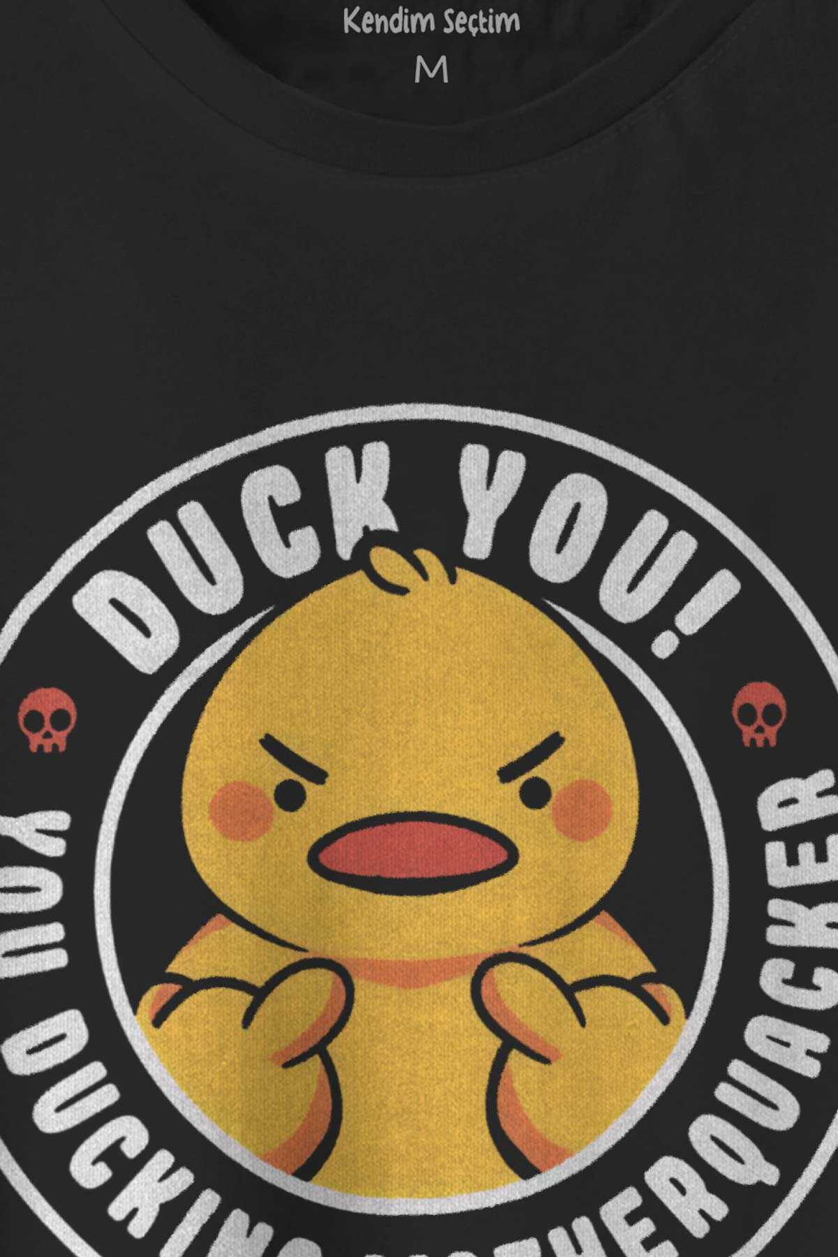 Duck You Ducking Duck Funny Eğlenceli Unisex Siyah T-shirt Sarı Civciv Baskılı Tişört