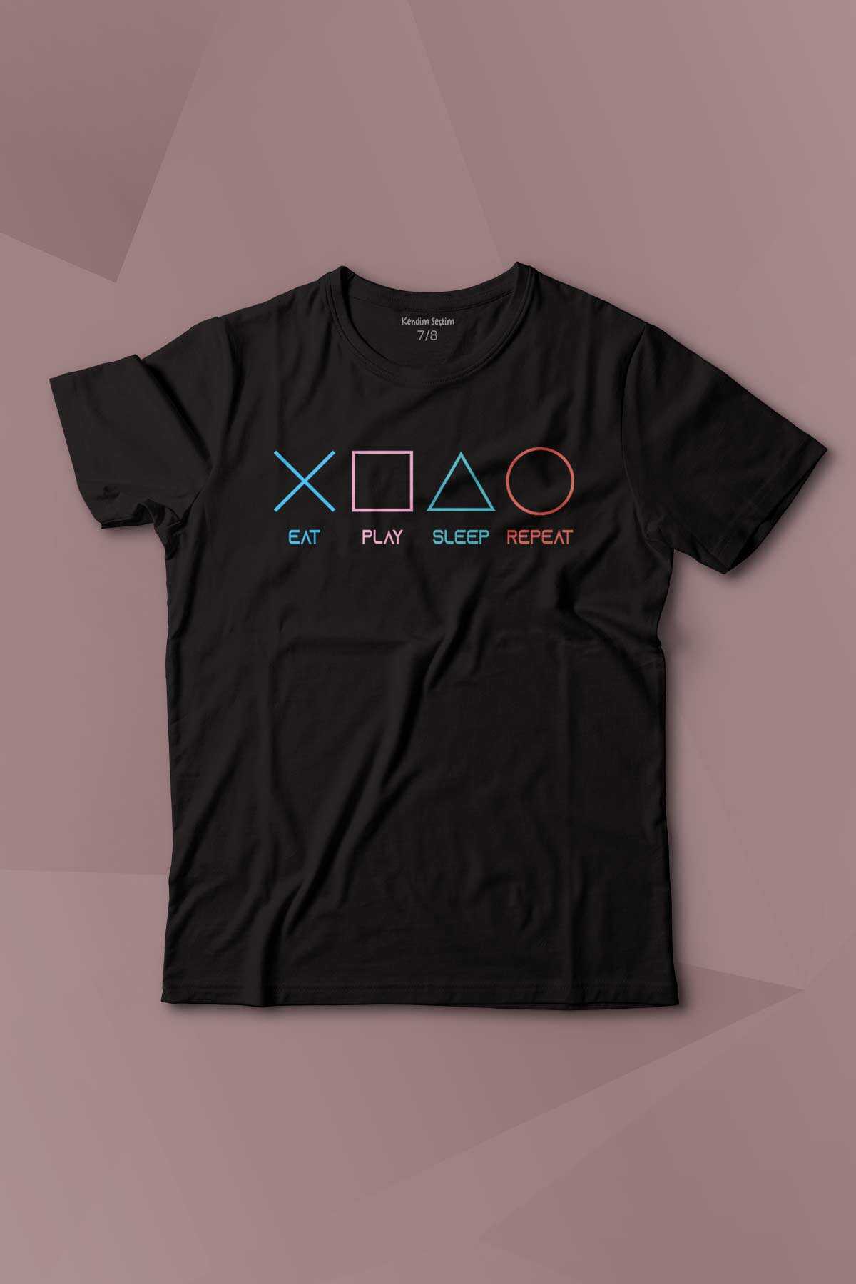 | Eat Play Sleep Repeat Gamer Oyun Baskılı Çocuk Tişört Kısa Kollu |