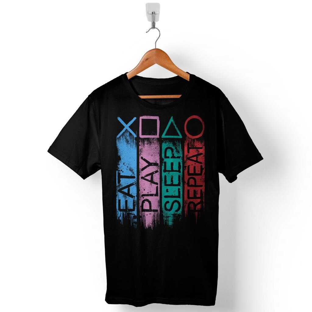 Eat Play Sleep Repeat Play Station Oyun Konsolu Baskılı Tişört Unisex T-Shirt