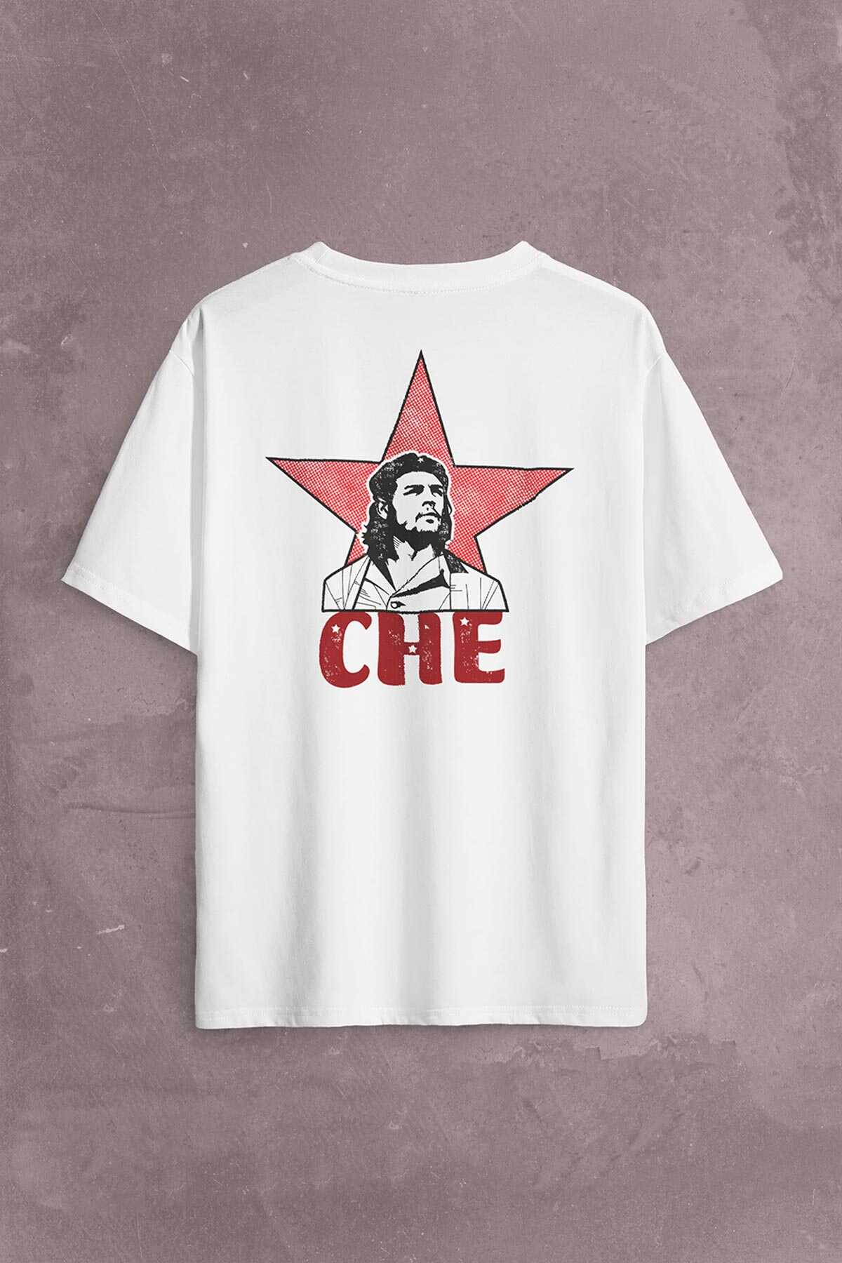 Ernosto Che Guevara Red Star Kırımızı Yıldız Sırt Ön Baskılı Oversize Tişört Unisex T-Shirt