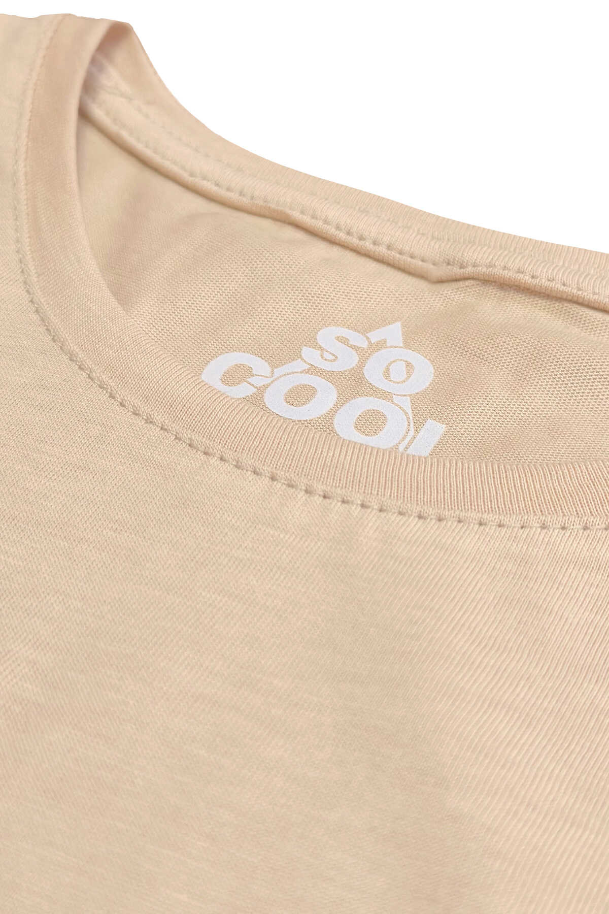 • Bej Crop , %100 Pamuk , Penye Süprem Basic Kadın Tişört.
