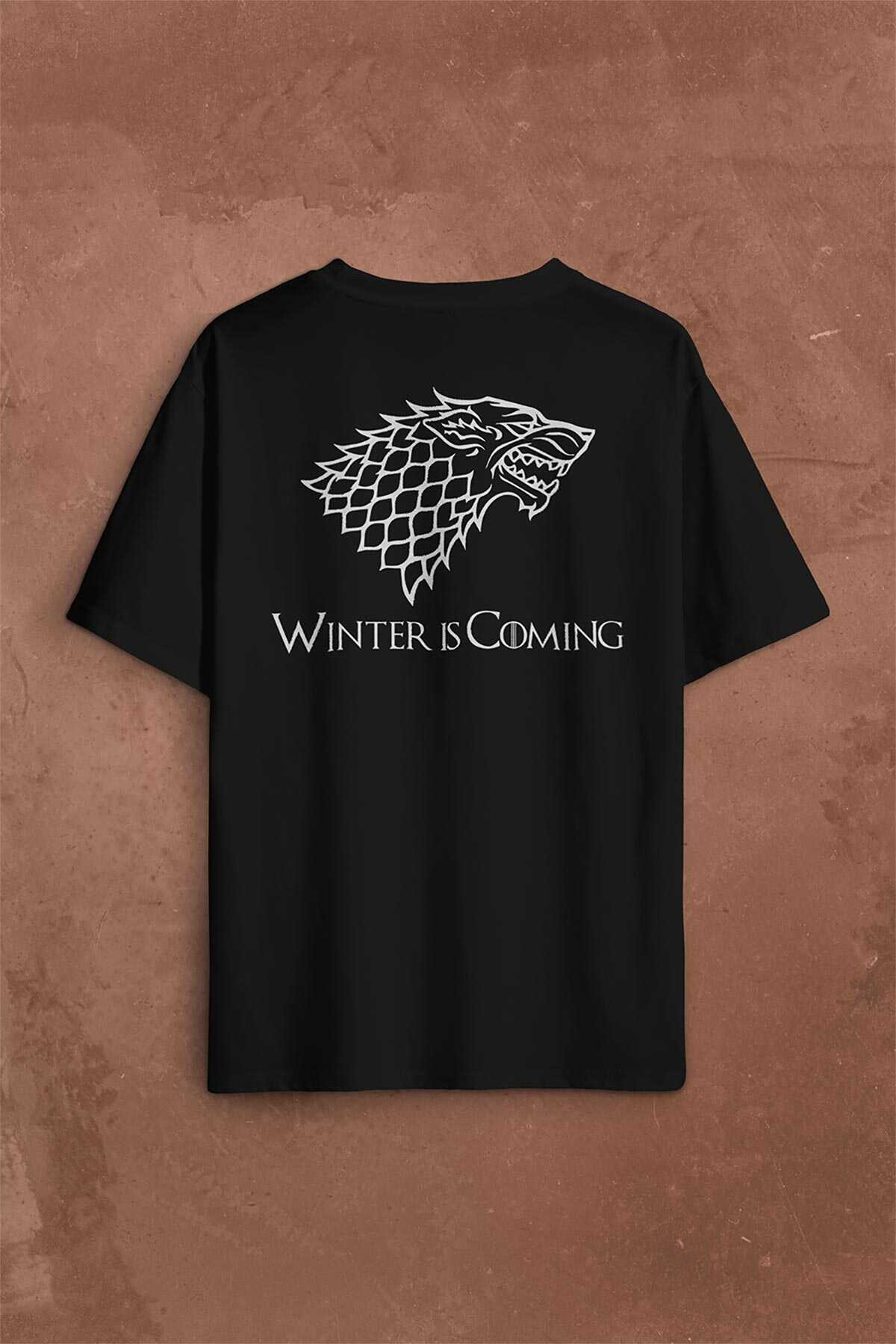 Game Of Thrones Winter Is Coming Sırt Ön Baskılı Oversize Tişört Unisex T-Shirt