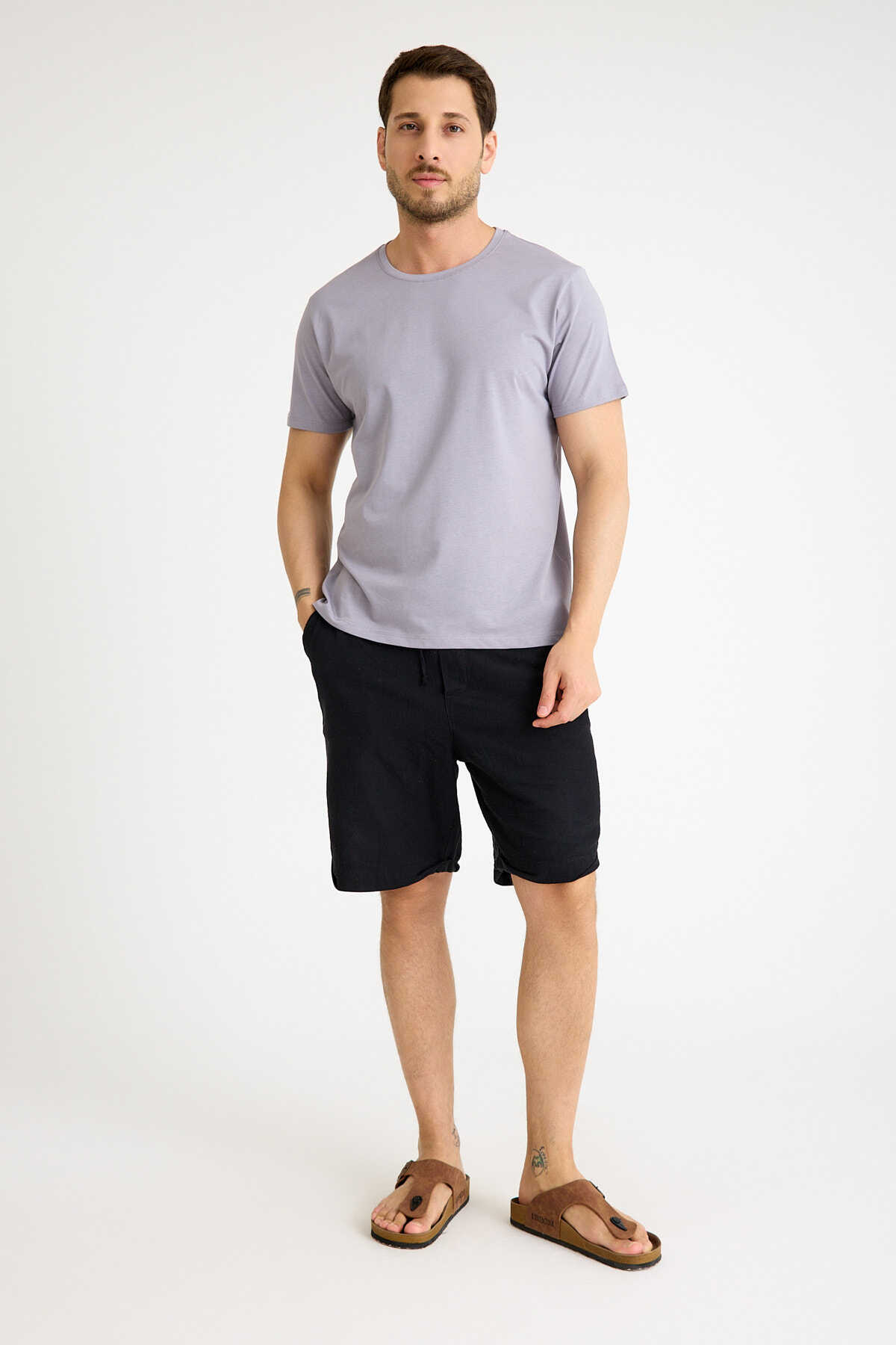 Gri Tişört Basic Erkek Regular Loose Fit Pamuklu T-shirt Kısa Kollu