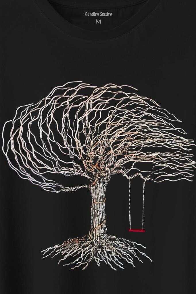 Hayat Ağacındaki Kırmızı SAlincak Kuru Ağaç Baskılı Tişört Unisex T-Shirt